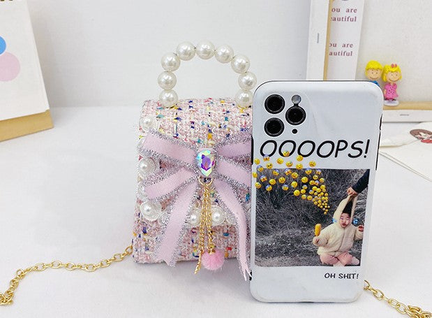 Silver Bow Tweed T Kids Purse(6PCS)